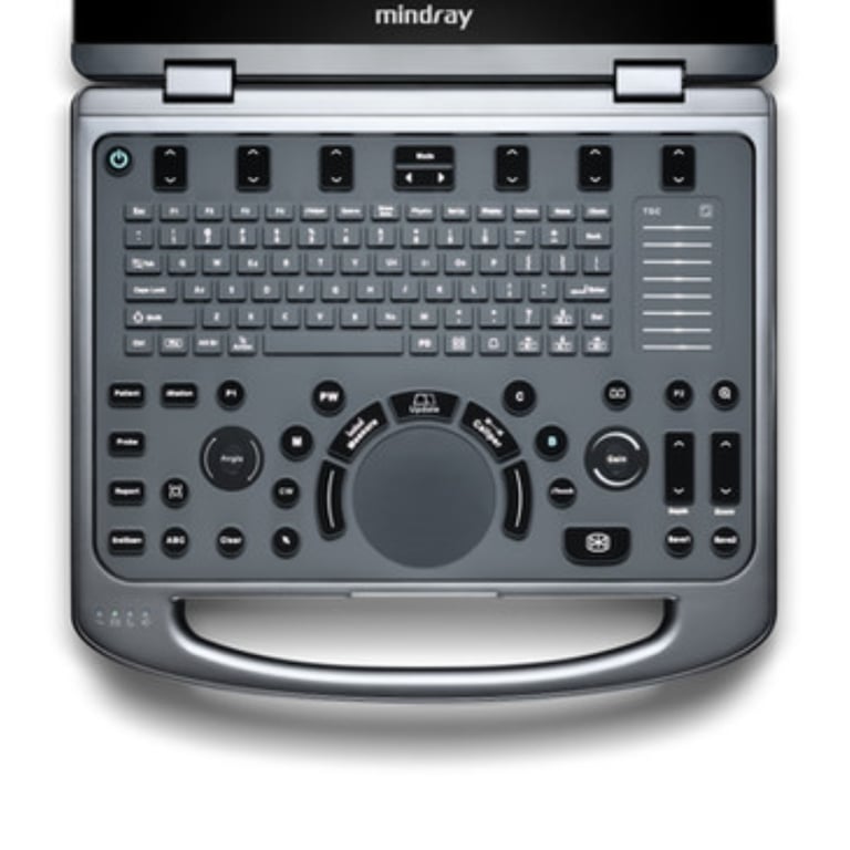 Vollständig versiegelte Tastatur für hygienegerechte Reinigung — direkt beschleunigt. Fingerswipe-Steuerung für intuitive Parameteranpassung. Breiter Neigungswinkel des Monitors für ergonomisches Arbeiten in unterschiedlichen Positionen — identisch mit MX5.