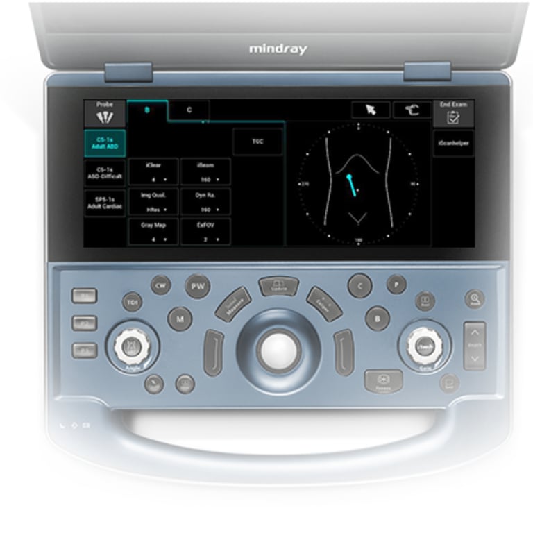 Das MX7 ist das erste Laptop-Ultraschallsystem mit ZST+-Plattform — 3 kg, 44 mm Bauhöhe, Magnesium-Gehäuse. Mit 15,6"-Display, 12,3"-Touchscreen und bis zu 8 Stunden Akkulaufzeit (U-Bank): das vollständige Allrounder-System für allgemeine Bildgebung und Kardiologie auf höchstem Niveau.